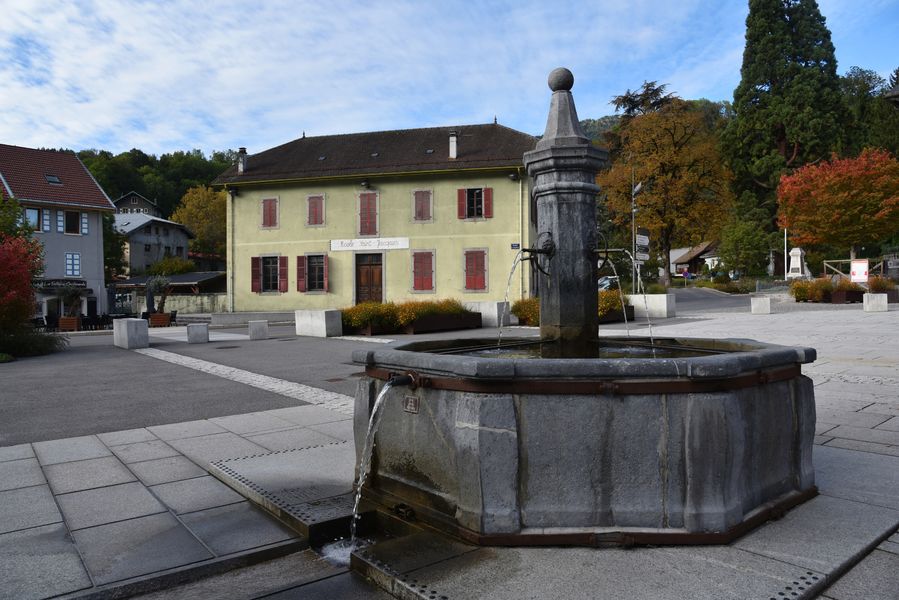 Construite en pierre grise de Magland, elle remplaça en 1765 une fontaine plus antique. C'était un des trois points d'eau potable qui alimentaient la ville. Elle a bénéficié d'une mise en valeur lors des travaux d'embellissement de la place en 2012-2013.