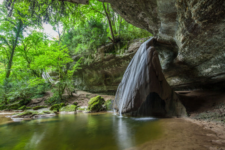 Curieuse stalagmite conique de 6 mètres de haut, située dans une spacieuse reculée, édifiée au cours des millénaires par les eaux très calcaires de la Brise. Splendide cascade lorsque l'eau coule sur le cône.
