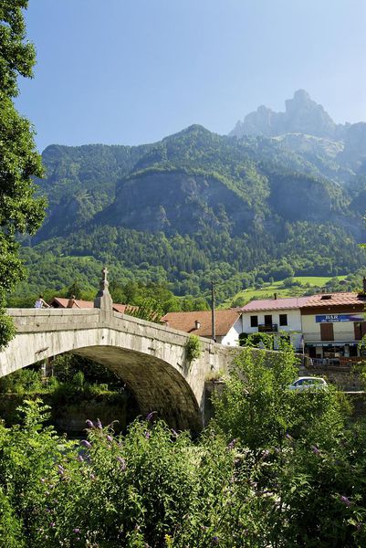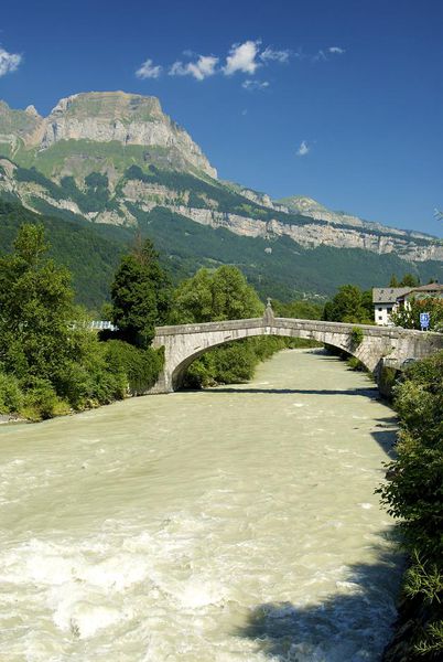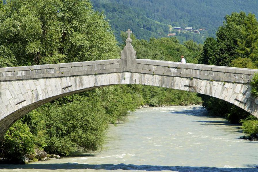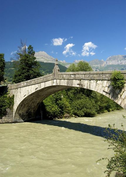 Mentionnée dès 1225, l'existence de ce pont est sans doute antérieure. Il était, jusque vers 1880, le point de passage obligé pour accéder à Sallanches. ll est classé Monument Historique depuis 1934 et ne devient que piétonnier en 1974.