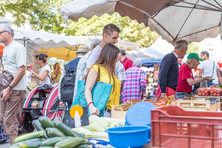 Dès le XIe siècle, les premières mentions relatives à Chambéry attestent la présence d’un marché, élément déterminant dans le développement de la ville. Le marché d’aujourd’hui dans les Halles, complètement transformées, perpétue la longue tradition de ces rendez-vous si prisés entre producteurs et consommateurs en plein centre-ville, avec pour cadre le tout nouvel îlot commercial, ses grandes enseignes, ses boutiques, son complexe cinématographique, et ses abords entièrement requalifiés. Producteurs et revendeurs locaux vous proposent toutes sortes de produits : boucherie, boulangerie, charcuterie, fromagerie, maraîchers, pâtisserie, poissonnerie, traiteurs et fleuriste. Production classique et produits bio. De plus, 2 jours par semaine, les abords des Halles accueillent un marché de plein vent. Les producteurs alimentaires investissent la place de Genève le mardi et les rues De Maistre et Favre le samedi. Les commerces de produits manufacturés, quant à eux, se déploient chaque samedi sur la place du Palais de Justice.