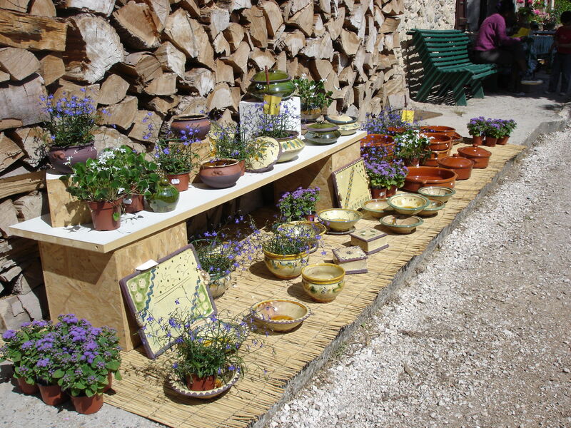 Visite de l'atelier et de l'exposition de poteries en terre vernissée, utilitaires et décoratives, pour la table et les plantes. Une artisane à deux pas du joli village de Lhuis pour une pause artistique.