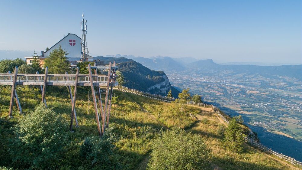 Ce matin le soleil brille sur La Féclaz. La température est un peu fraîche à cette altitude, mais c’est le temps idéal pour démarrer une journée de marche. On commence tranquillement par la traversée du plateau nordique. On l’imagine recouvert de neige en hiver, avec les skieurs lancés sur les pistes. Arrivés au Revard, la vue sur la plaine du lac du Bourget est splendide. Ça tombe bien, c’est l’heure du pique-nique à la tome des Bauges ! C’est reparti sur le chemin des Crêtes. Puis on redescend dans les alpages et les chalets Baujus en saluant les vaches au passage. Plus que le Col de la Cochette à passer pour rejoindre le Refuge du Creux de Lachat. L’accueil du gardien et sa bière en terrasse sont parfaits pour clore une si belle journée. Après une bonne nuit de sommeil nous serons d’attaque pour poursuivre l’aventure en Bauge, qui réserve encore quelques belles surprises : des gorges, des grottes, des falaises, des glacières, et même un pont du Diable… Vivement demain !