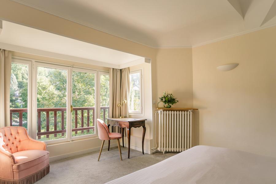 Entre lac et montagne, sur les hauteurs d'Evian, la Verniaz est un grand jardin où chalets et maisons anciennes sont harmonieusement disséminés parmi les arbres et les fleurs. Jolie terrasse. 35 chambres vue montagne et lac et 6 chalets de 2 à 8 personnes