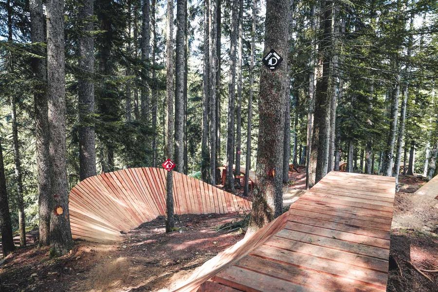 Avec un départ à 1630 m d’altitude, sur le plateau de Beauregard, la piste de La Ferriaz propose un parcours riche en bonnes surprises. C’est certainement la piste la plus technique du domaine avec la zone North Shore, située à mi-parcours dans une magnifique forêt de hêtre. Ce petit coin de slopestyle compte plusieurs modules différents dont un très aérien pont suspendu, des bosses et des tables. ATTENTION : Cette piste comporte plusieurs liaisons sur piste forestière avec des zones de cohabitation des pratiques VTT et pédestre. Soyez prudents, attentifs aux autres usagers et adaptez votre vitesse sur ces sections ! Longueur : 4,3 km / Dénivelé positif : 3 m / Dénivelé négatif : 582 m / Difficulté : rouge