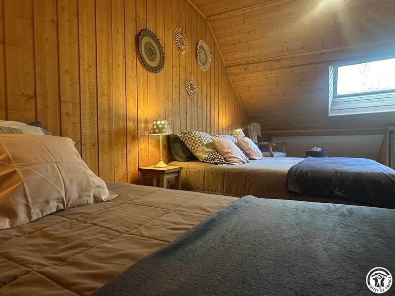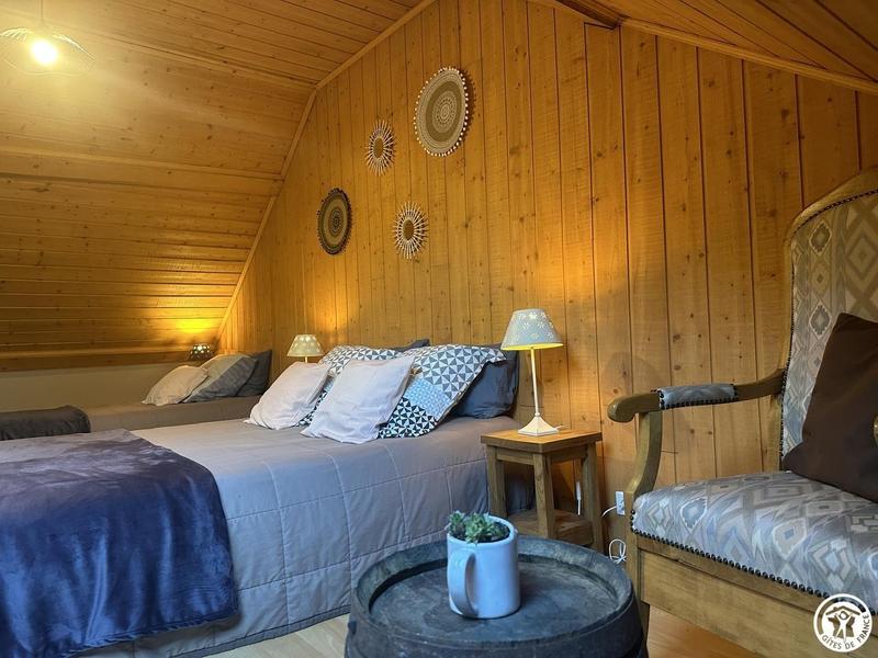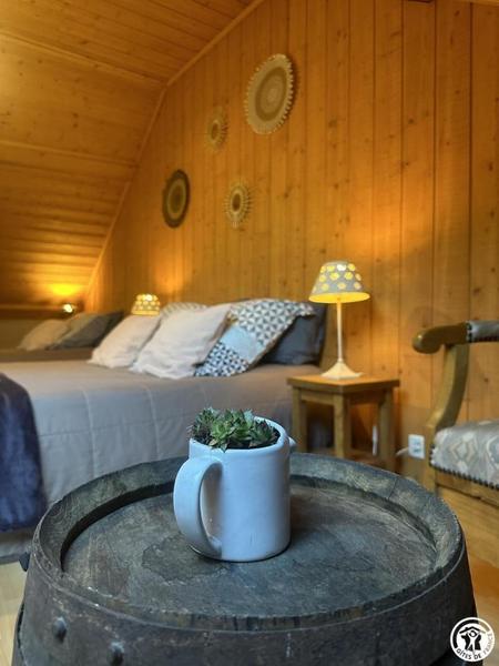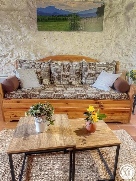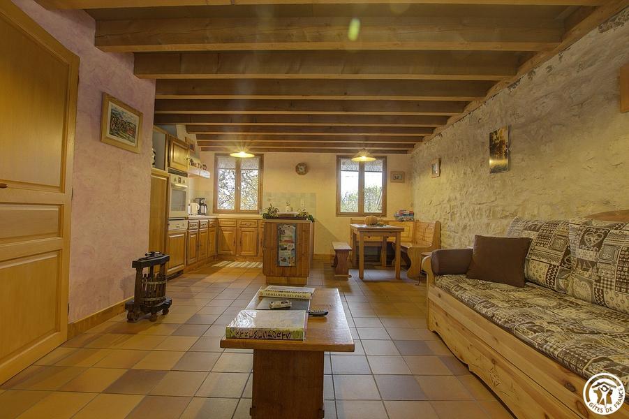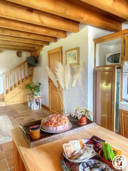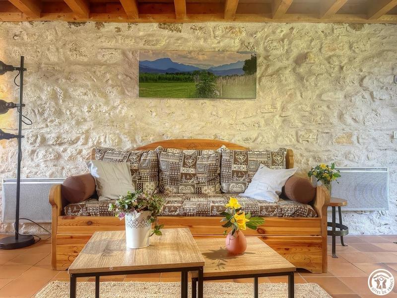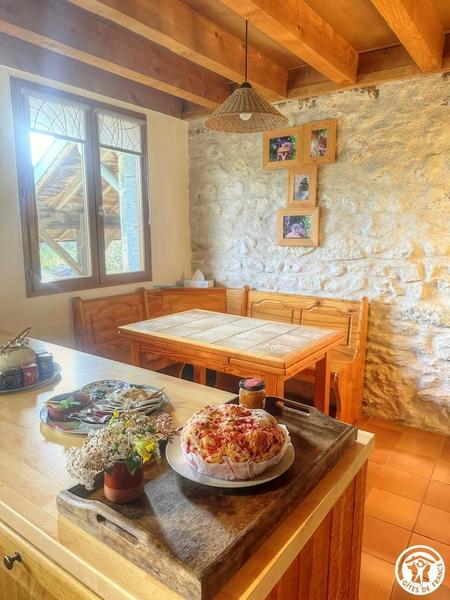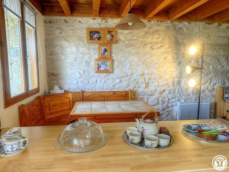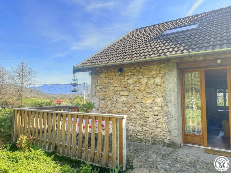 L'écureuil du Bugey, situé à l'arrière de cette maison datant du 19ème siècle, qui était auparavant une exploitation viticole, sans vis-à-vis et un grand jardin clos, vous ouvre ses portes sur un pièce de vie, mêlant le bois et la pierre, avec son salon avec son canapé lit gigogne pour une ou deux personnes, sa cuisine ouverte très bien équipée et son coin repas. A l'étage une belle chambre équipée d'un lit double et un lit simple et sa salle d'eau. Les draps et le linge de toilettes sont inclus. WC indépendant au rez-de-chaussée. Un forfait ménage est proposé avec un supplément de 50€. Le chauffage est électrique et compris dans le tarif de location. Les propriétaires, discrets, mais toujours disponibles, se feront un plaisir de vous faire découvrir leur production apicole (visite du rucher avec le propriétaire apiculteur) et le four à bois avec la cuisson de galettes, pain, gratins etc.. La brasserie La Gevrinoise à quelques pas du gîte, aura également plaisir de faire découvrir sa production.