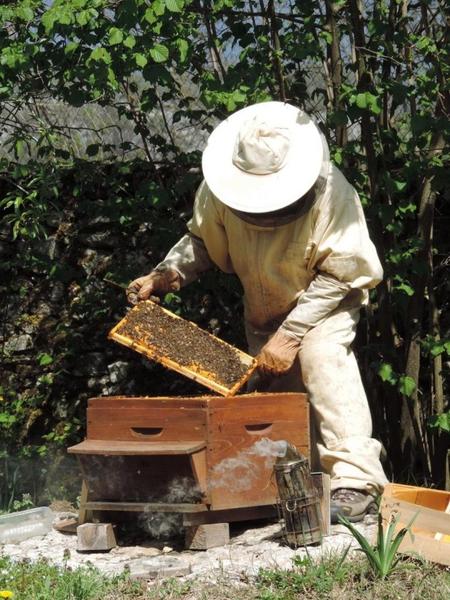 L'apiculteur ouvre ses ruches au printemps pour voir l'activité de sa ruche et si tout va bien.