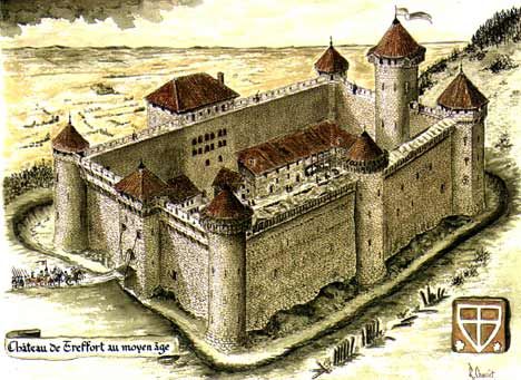 L’histoire de Treffort est citée dans les livres dès l’an 974 (Trefortium) avec la construction de la première maison forte, mais il ne fait aucun doute que le site ait été habité bien avant, notamment à la période gallo-romaine. Accroché aux premiers chaînons du Jura, Treffort est un village perché qui a gardé son plan médiéval. Seigneurie des comtes de Bourgogne, la cité appartint aussi au seigneur de Coligny, à qui l’on doit la construction du château, et à celui de la Tour du Pin, qui accorda une charte de franchise aux habitants mais qui devra céder Treffort au comte de Savoie en 1289. Ce dernier dota la ville de remparts, percés d’au moins six portes et défendus par plus de trente tours dont on voit encore les vestiges. En 1601, Treffort est rattaché au royaume de France par le traité de Lyon. La vigne a aussi modelé la cité pendant plus de mille ans, jusqu’à l’arrivée du Phylloxéra et la Première Guerre mondiale. Aujourd’hui, le Comté remplace le ""p’tit vin"" des Cavets (surnom des habitants du Revermont). Treffort fut une place frontière avec la Franche-Comté qui se trouve juste derrière la montagne. Plusieurs fois assiégée, la cité retrouve la sérénité avec le rattachement de la Comté à la France en 1678. De cette époque défensive, on peut encore apercevoir les restes du château (aujourd’hui privé) et flâner sur le chemin de ronde qui longe les anciens remparts côté vallon. Construits par les Savoyards, ils étaient percés d’au moins six portes et garnis de plus de trente tours, et leur hauteur était égale à celle de l'église. La maison forte du Haut Moyen Age se transforme au XIIIe siècle sous l’impulsion des sires de Coligny. Elle devient château défensif, renforcé de huit tours, dont l’une, au sud, servait d’entrée. Il occupait un quadrilatère de 60 m x 43 m, protégé au sud par un fossé, un pont-levis et au nord, par une tranchée creusée dans le roc qui sert aujourd’hui de chemin. Il est ravagé au XVIe siècle et transformé en carrière de pierre (de nombreux réemplois sont visibles un peu partout dans le village). Racheté et en partie reconstruit par Tony Ferret (1851-1923), architecte départemental de l’Ain. Rue Pelot : toponyme du franco-provencal ""pêl"" (poil) en lien avec l'industrie du travail des peaux ou ""pelo"" (gruau) et en lien avec la présence d'aire de battage des grains. Les tanneurs y trouvaient l'eau du Nacaretan, ruisseau indispensable à leur travail car à l'écart de la ville, pour éviter l’odeur désagréable des peaux. Les cours des maisons (sur la droite de la rue) au pied des anciens remparts, servaient autrefois d'aire de battage. Fontaine des trois jets : progrès extraordinaire, elle permettait aux habitants de ne plus aller puiser l'eau à l'extérieur du village. Une légende raconte que les bonnes années de vendanges, le vin y coulait à flot. Fontaine du Carrouge (1850) : à l’emplacement d'une ancienne maison (restes de cheminée, niches murales...). Carrouge, du latin ""quadrivium"", signifie carrefour de quatre chemins. Rue Ferrachat : du latin ""ferrarius"" (forgeron) ou ""ferratus"" (garni de fer). Sous la rue, présence d'une citerne d'époque romaine. A voir : becs d'éviers dépassant des façades. Maison à pont : cette façade offre des fenêtres à meneaux, un linteau de porte en anse de panier et surtout un escalier appelé ""pont"". Il permettait d'accéder à la maison qui se trouvait surélevée par rapport à la rue en raison de la cave à vin semi enterrée dans le rocher. Les autres ponts ont été démolis au XIXe s. pour faciliter la circulation. Le pilier creux (réemploi) était rempli d'eau et servait au charron pour refroidir brusquement le cerclage métallique des roues de char pour le resserrer. Rue du fiscal : elle menait directement à l'ancienne châtellenie, lieu où les impôts étaient perçus. Les halles : Datées du XIVe siècle, elles étaient initialement composées de piliers en bois et de murs en torchis et accueillaient le marché tous les jeudis matins. L'après-midi était réservé aux audiences publiques tenues par le châtelain. Détruites par un incendie, elles furent reconstruites au XIVe siècle. L'église Notre- Dame de l'Assomption (XIVe siècle) est située sur le haut du village, près du château. Son clocher fut bâti avec l'aide des moines de Nantua, alors que la nef resta à la charge des villageois et fut couverte à la hâte. Ce qui explique le décalage entre la nef et le clocher. La façade fut richement décorée au cours des XVe et XVIe siècles. La Vierge à l'Enfant est abritée par un auvent de type gothique. De part et d'autre du portail d'entrée, trois blasons célèbrent le retour de la Bresse et du Revermont à la Maison de Savoie, par le mariage du Duc Emmanuel-Philibert de Savoie avec la fille de François Ier, Marguerite de France. La croix surmontant le pignon, est percée d'un oculus et son centre présente des branches en forme de fleur de lys. A l'intérieur les stalles de style Louis XIV sont remarquables. Elles proviennent de la chartreuse de Sélignac située à quelques kilomètres ; ses médaillons sculptés illustrent la vie de Saint-Bruno, fondateur de l'ordre des Chartreux, de la prise de l'habit à sa mort.