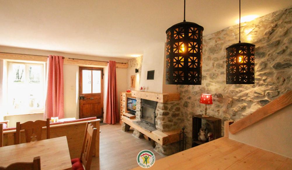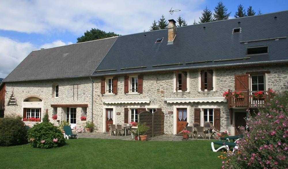 Entre lacs et montagnes, sur un site arboré, fleuri et préservé, Le Jonan, ferme traditionnelle en pierre, entièrement rénovée et aménagée en 2 gîtes mitoyens.