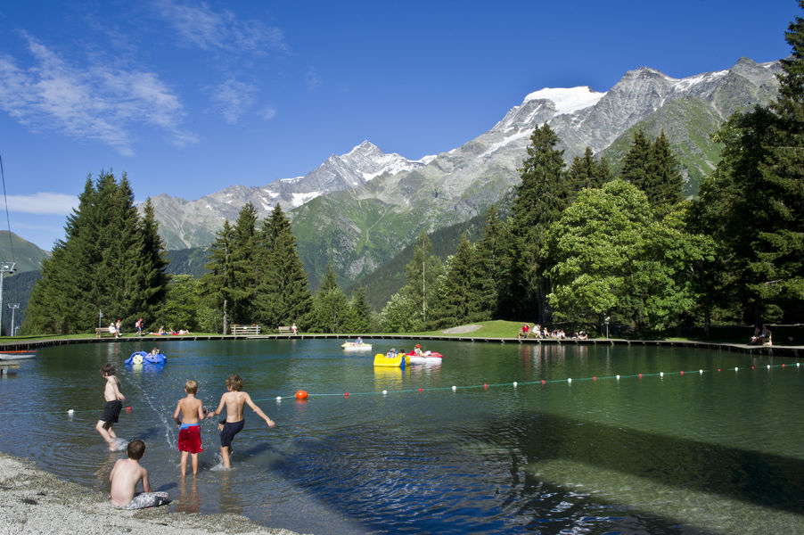 Un lac à 1470 mètres d'altitude, au sommet de la télécabine de la Gorge, face au Mont-Blanc. Plan d'eau avec des bateaux à pédales.