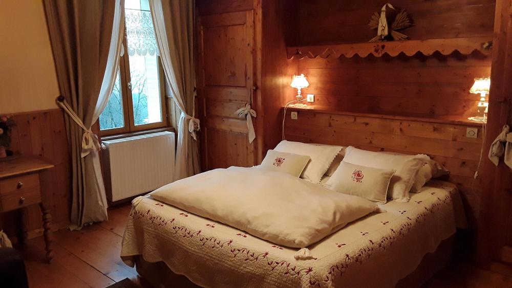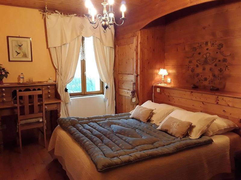 Denis et Isabelle vous ouvrent leur 5 chambres de caractère au décor raffiné bois, situées à l'étage, avec accès indépendant : 4 Chambres de 2 personnes et 1 chambre familiale de 4 personnes, avec salle de bain et WC indépendant. Sauna,.grande bibliothèque. Salon/salle à manger, Poêle bois. Grand balcon en bois, belle vue dégagée, au calme, aménagée pour repas. Table d'hôtes le soir sur réservation. Tarif dégressif dès la 2ème nuit. Animaux acceptés avec supplément.
