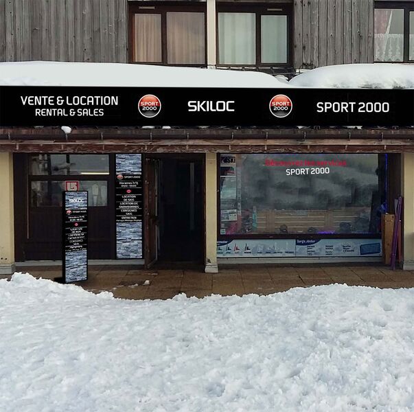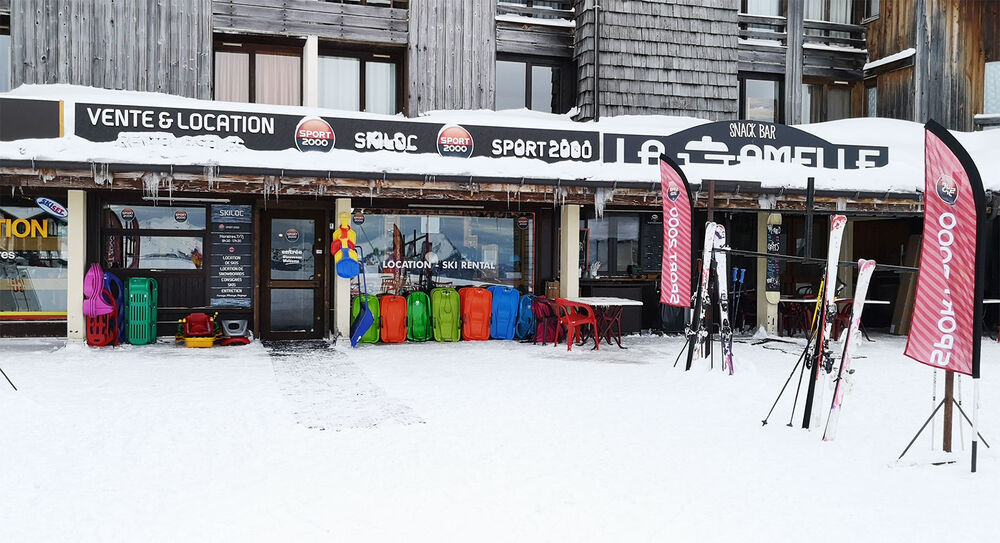 Location de matériel de ski, snow et vente d'accessoires à Samoëns 1600, à l'arrivée de la télécabine de Vercland.