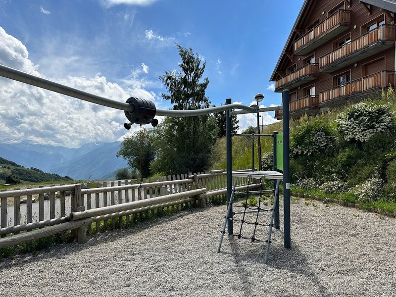 Une aire de loisirs pour enfants dans le quartier de Plan Mollaret avec une balançoire, une tyrolienne...
