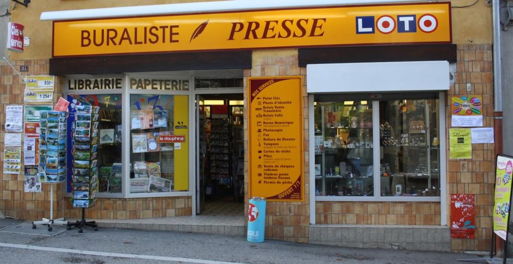 Tabac, Presse, loto, papeterie, librairie, photocopie, borne impression photo, reproduction clé mvente de timbres poste, timbre fiscaux, reliure de dossier, PMU, vente de permis de pêche, plaque de boite aux lettres , paiement de proximité, cadeaux...