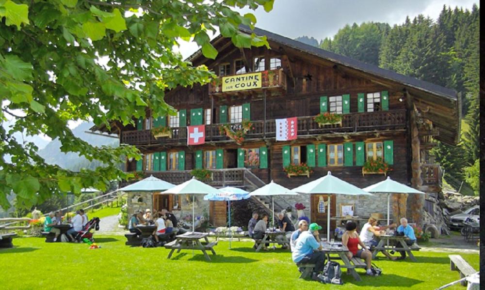 Havre de paix qui vous attend à 10 minutes de voiture au départ de Champéry, au milieu de la verdure joliment aménagé et coquettement fleuri en été. La porte franchie, les clients avouent avoir l'impression d'être accueillis dans une maison de famille. La décoration chaleureuse, la grande cuisinière à bois, le morbier et le fourneau en pierre ollaire plus ancien que la bâtisse donnent envie de s'attarder tandis que les enfants peuvent s'égayer dans le grand jardin où les attendent la place de jeux, les chèvres naines et les lapins de la famille Gillabert.