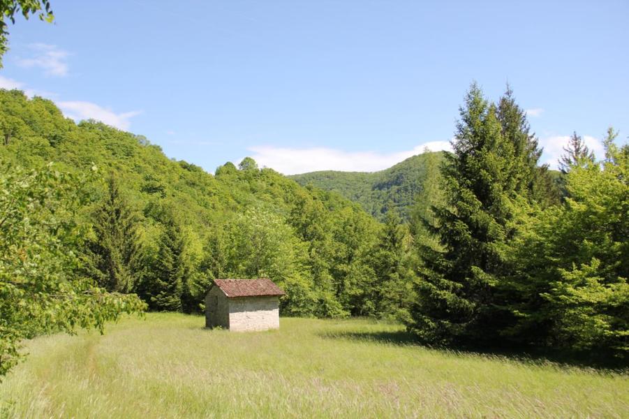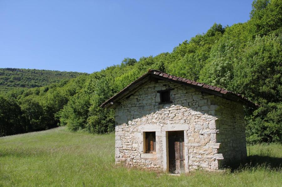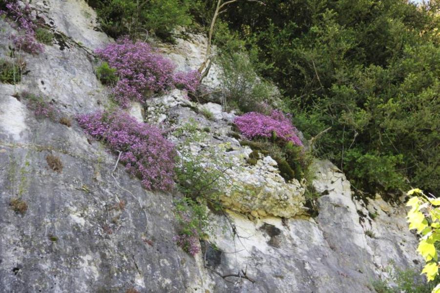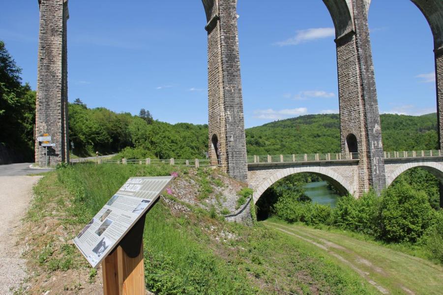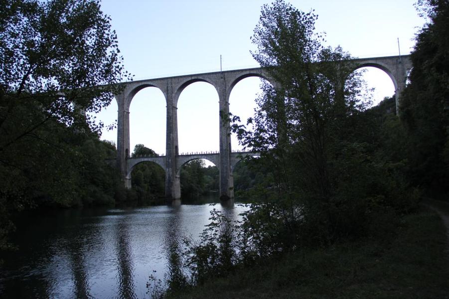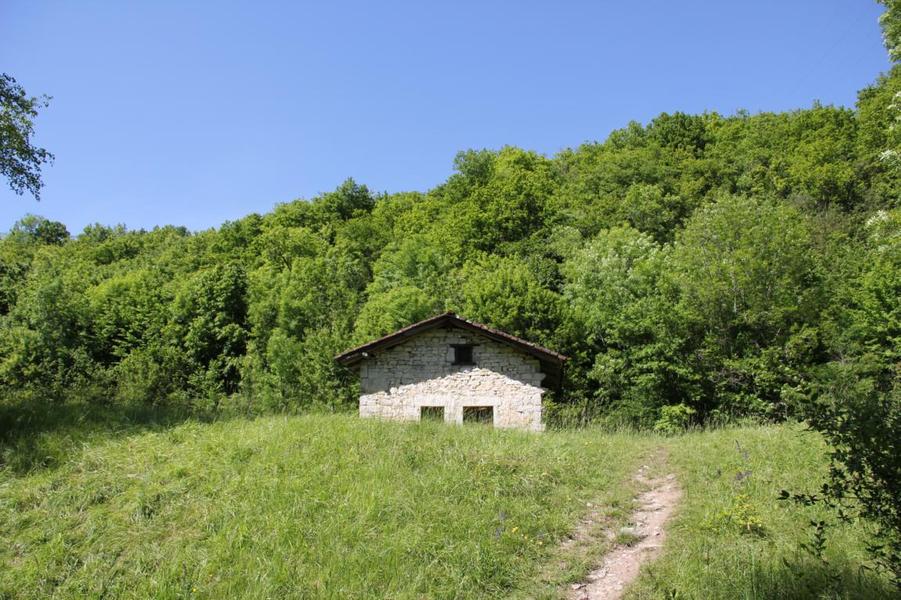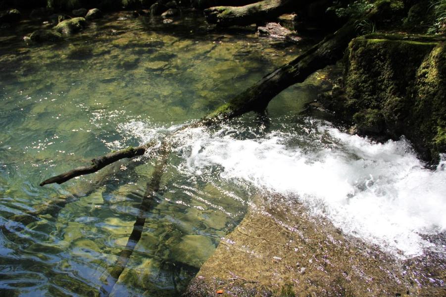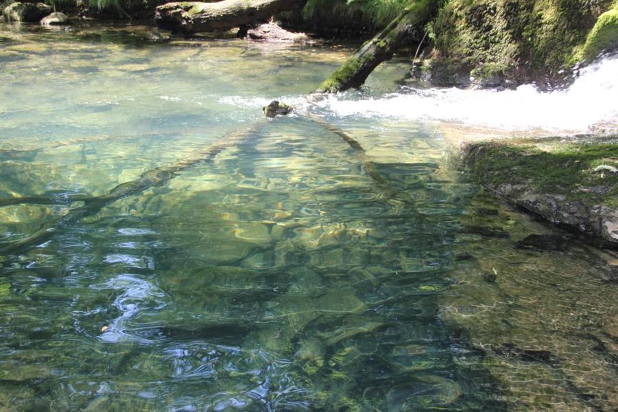 Depuis le viaduc, longez la rivière d'Ain et ses cabanes de pêcheurs. A côté d'une petite cabane en pierre à deux pas de l'eau, on découvre ce petit ruisseau qui sort de la roche pour rejoindre l'Ain. La "fontaine Noire" fait partie de l'ENS Haute vallée de l'Ain labellisé "ENS" par le Département de l'Ain en 2019. Véritables joyaux naturels et paysagers du Département de l'Ain, les sites bénéficiant du label ENS « Espaces naturels sensibles » sont gérés de manière à préserver la biodiversité qu’ils accueillent et aménagés pour l’ouverture au public (sauf exception due la fragilité des milieux). Spéléologie : Lors d'une prospection des rives de l'Ain en 1976 la cavité est découverte par les spéléologues. Robert Durand et Jean-Louis Fantoli explorent 402m de conduits noyés jusqu'à une laminoir étroit. Le 05/06/1977, une opération interclub (Daniel Andrès, O.Bigot, Jean-Louis Fantoli et Pierre Licheron) permet de trouver la suite dans le siphon et de déboucher dans une galerie exondée terminée par une trémie. La cavité se compose principalement de deux parties, caractérisées par l'existence d'une branche siphonnante à l'aval du trajet souterrain et d'une partie semi-active à l'amont. La vasque d'entrée plonge à -3 jusqu'au départ de la galerie. Après un point bas à -7, le couloir noyé (2,5 x 5m de section), au plancher et au plafond étonnement plans et lisses, remonte au bout d'une cinquantaine de mètres dans une salle d'effondrement, exondée en partie à l'étiage. De gros blocs et dalles de rocher entravent le passage et d'épais dépôts argileux tapissent à cet endroit le sol et les parois. En amont, le conduit s'immerge totalement et plonge à -10m. Tout au long du parcours, des stalagmites et stalactites attestent d'une phase exondée de la cavité, et demeurent une des curiosités maîtresse de la Fontaine. A 170m de l'entrée, un puits de 2m de diamètre est taillé à l'emporte-pièce au beau milieu de la galerie, qui se prolonge par un laminoir de 30m de long. Le puits donne accès à -20 à une galerie basse reliée également au laminoir par une cheminée de 8m. Des lames d'érosions hérissent le conduit jusqu'à la cote 280m, dans une salle à -18. Deux options se présentent : - au fond de la salle, en hauteur, un laminoir à -10m exhale un courant perceptible. - A l'ouest, une haute diaclase recoupant perpendiculairement l'axe de la salle, débouche à l'air libre en s'y refermant. A mi-hauteur, à -5, une galerie se prolonge sur une cinquantaine de mètres jusqu'à l'air libre, à 350m de l'entrée. La galerie exondée s'oriente vers le nord durant 284m. Les eaux de trop-plein de la circulation sous-jacente y circulent. Elle se développe sur un joint de strate (4 x 1,5m), recoupée par de nombreuses fractures perpendiculaires. Un redan de 6m précède un lac baignant en son extrémité une trémie impénétrable. Température de l'eau : 10°C.