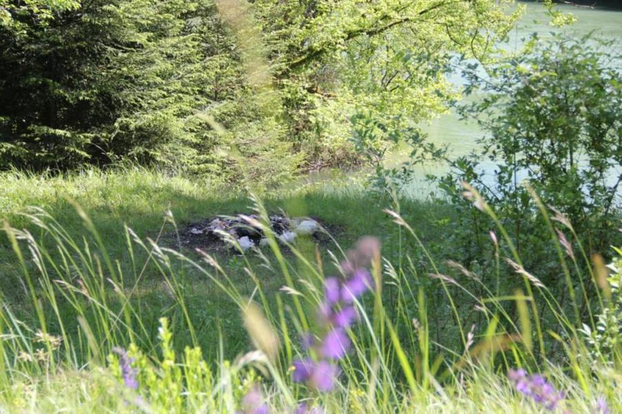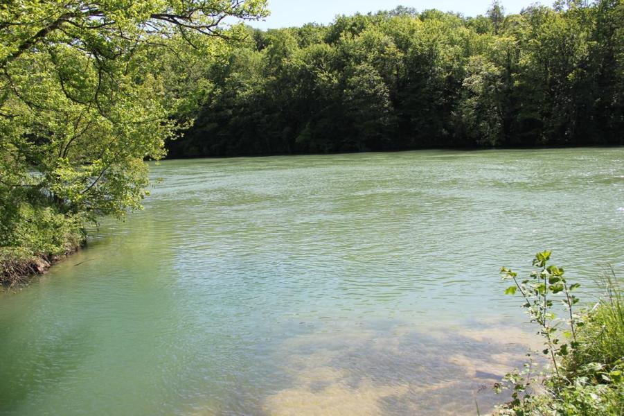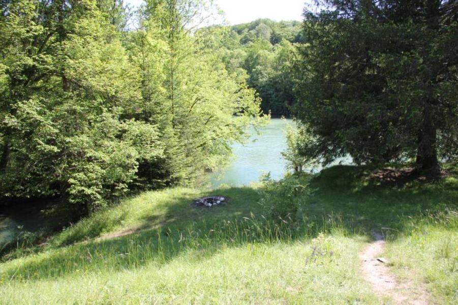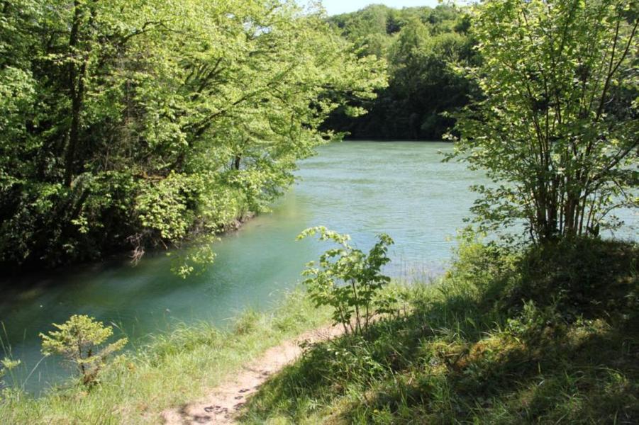 En rive droite de l'Ain, dans un méandre caractéristique, entre les villages de Corveissiat et de Bolozon, magnifique site en bordure de la rivière. Des eaux d'une couleur impréssionante en forte eau. Accès pedestre depuis le viaduc de Cize.