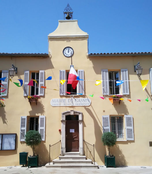 Depuis le XVIe siècle, la mairie de Gassin se trouve au cœur de village, dans un corps de bâtiment qui accueillait autrefois le four banal et l'école communale pour garçon.