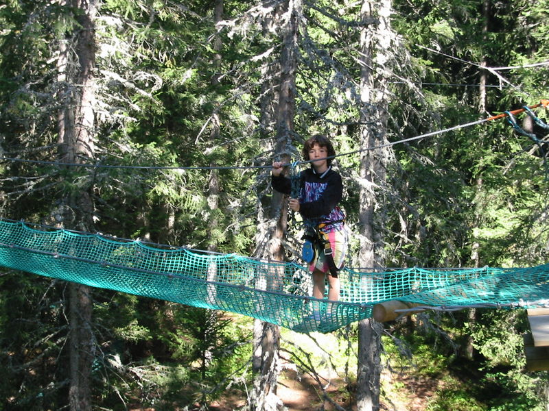 L'aventure au gré des arbres, sauts de Tarzan, filets, passerelles, tyroliennes et surf dans les arbres. 3 parcours pour une soixantaine de jeux.