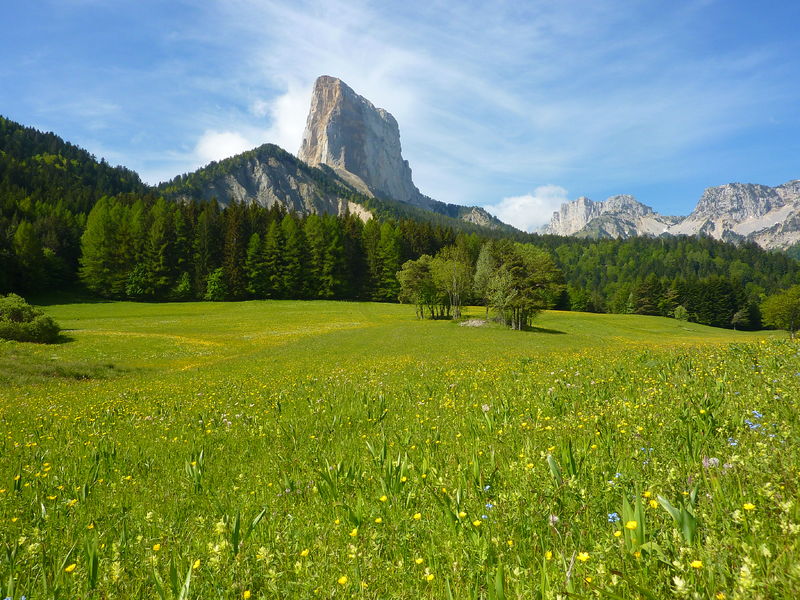 Le tour du Mont-Aiguille est une très belle et longue randonnée qui permettra aux randonneurs d'observer cette aiguille de calcaire, détachée de sa falaise originelle voisine, sous tous ses angles. La diversité des paysages rencontrés est étonnante !