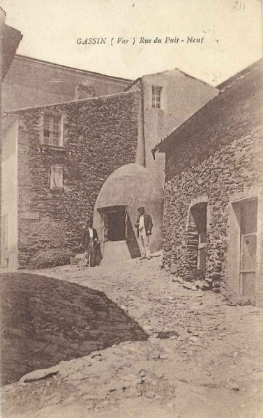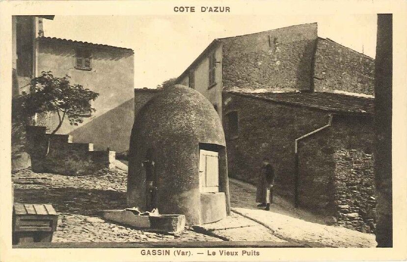 Fuyant l’insécurité des plaines où ils s’étaient installés depuis plusieurs siècles, les habitants s’installèrent vers le XIIIe siècle sur la colline où se trouve actuellement Gassin. L’eau manquait sur ce piton rocheux, à 200 mètres d’altitude. Plusieurs sources existaient en contrebas du village : celles de l’Arlatane et de Bonne Fontaine notamment, mais leur éloignement ne permettait que partiellement de subvenir aux besoins pour les hommes, les bêtes et les plantes. Au village, de nombreux habitants possédaient une citerne pour recevoir les eaux de pluie. Le puits à l’intérieur de l’enceinte fortifiée était le seul point d’eau collectif. Il était alimenté par les eaux de ruissellement mais peut-être aussi par une source. Les problèmes d’approvisionnement en eau du village furent récurrents jusqu’au rattachement des circuits du village à un réseau plus vaste au XXe siècle. Avant cela, la tour du château primitif, jouxtant le presbytère, avait été transformée en citerne et un système permettait au XXe siècle de recevoir au village les eaux de la source de Bonne Fontaine. Ce puits, appelé le Puits Neuf, a été daté du XVIIe siècle. Son existence est attestée au début du XIXe siècle. Il possède un diamètre intérieur de 1,8 mètres et a 7,4 mètres de profondeur.