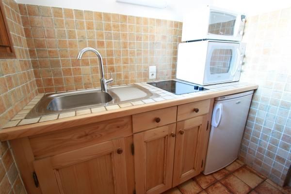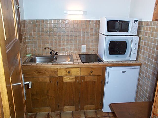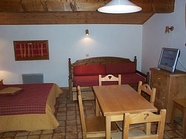 Séjour, êtite cuisine indépendante, 1 lit double et salle de bain séparée. Equipé d'une télévision, satellite, internet Wifi, lave-linge et sèche-linge communs, balcon, salon de jardin, parking privé, local à skis, location de draps et linge de toilette, location matériel pour le ski.