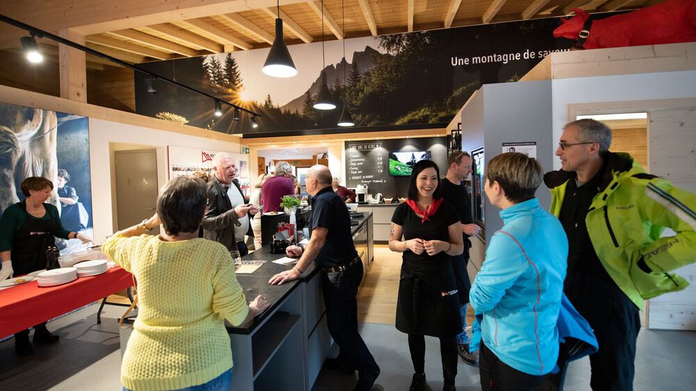 L’équipe de La Cavagne est heureuse de pouvoir vous recevoir dans son espace du terroir de la Vallée d'Illiez à Troistorrents. Désormais le magasin propose, en plus de ses multiples produits locaux, une cave d'affinage visible depuis le magasin ayant une capacité de 16'000 meules. Un espace du terroir vous permettant de déguster des produits locaux sur réservation pour l'organisation de séminaires, conférences, assemblées, sorties d'entreprises ou événements privés (de 10 à 50 personnes ; beamer, wifi). Le fromage est produit par les agriculteurs de la région, les confitures sont faites maison, le pain est artisanal et la viande locale. N’oublions pas le vin régional et les alcools riches en caractère, les paniers garnis, les confiseries et bien plus encore. Rajoutez à toutes ces bonnes choses l’ambiance chaleureuse et vous comprendrez l'engouement pour un tel lieu. La Cavagne a été primée par le jury du Prix Montagne, décerné par le Groupement suisse.