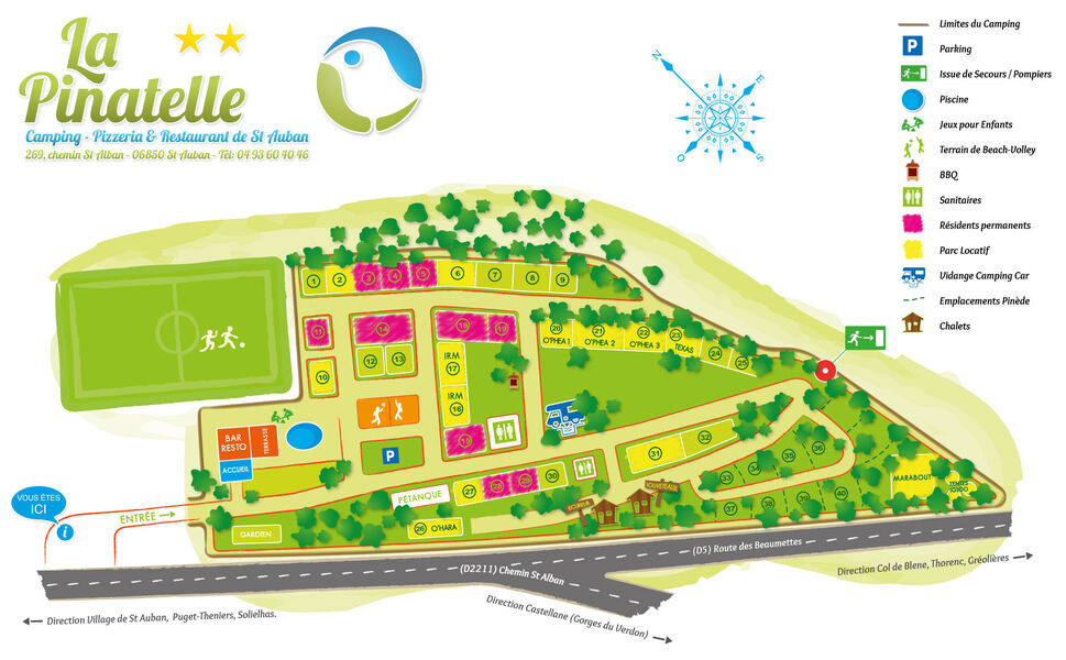 Notre camping Tikayan La Pinatelle classé 2 étoiles, vous accueille à Saint Auban. Entre Pays de Grasse et Parc naturel du Verdon, les amateurs de tranquillité et de nature seront conquis. Notre camping situé dans les Alpes Maritimes vous offre des locations confortables, des chalets avec vue sur les falaises dominant Saint Auban, ou des locations de mobil homes climatisés. Séjournez dans notre Camping à Saint Auban avec votre propre tente, camping car ou Caravane, et profitez de notre piscine chauffée, et dégustez un petit plat dans notre restaurant avec sa terrasse vue sur le village et les falaises. Le site propose des emplacements ombragés et intimistes sur une superficie de 100 m2 délimités, pour des moments calmes et reposants. Des commodités et équipements adaptés sont mis à disposition pour vous accueillir dans les meilleures conditions. Piscine chauffée, ouverte tous les jours gratuitement (de mai à septembre, de 10h à 20h) Pour les plus petits, une aire de jeux adaptée et sécurisée. Et pour les challengers : Un terrain de foot. Terrain de volley (200m) Un terrain de boules. Une table de ping-pong. Un billard & babyfoot. Un Mini-golf.