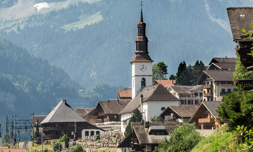 Existante déjà au XIIIe siècle, la paroisse de Val-d'Illiez a eu, au cours du temps, un statut particulier. Dépendante à l'origine du diocèse de Sion, elle passa de 1331 à 1607 sous l'autorité de l'abbaye d'Abondance (Haute-Savoie, France) en devenant un prieuré. Ce lien fit que le curé du village porte toujours le titre de prieur. L'église actuelle est le troisième sanctuaire élevé en ce lieu. Le patronage de Maurice est mentionné en 1445 lors de la visite pastorale de l'évêque de Sion, Guillaume VI de Rarogne. Construite au XIIe ou au XIIIe (?), la première église fut remplacée par un nouvel édifice en 1434 (la date est inscrite sur le clocher). En raison d'une importante augmentation de la population, il faudra édifier une nouvelle maison de Dieu en 1687. Ce furent des maîtres-maçons de la région de Novare (Italie), Jean Axeri et Jean Geonina, qui furent chargés de ce travail. Le clocher fut exhaussé pour atteindre 40 mètres : il se termine par une flèche de style lombard, composée de trois bulbes reliés par deux lanternes. Lors de la restauration de 1967, on y a placé un cadran solaire avec l'inscription « Carpe Diem » (Mets à profit le jour présent). Conçue sur un plan rectangulaire, la nef large de 14 mètres sans piliers est couverte d'un plafond voûté en bois. Le chœur, plus étroit, est surmonté d'une voûte en éventail à trompes.