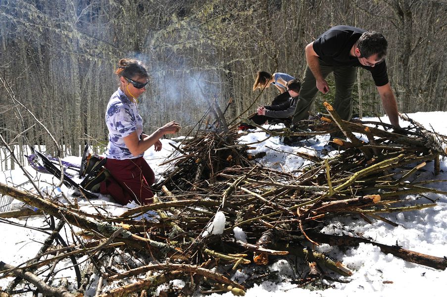 Journée Trappeur avec pique-nique autour du feu de bois.