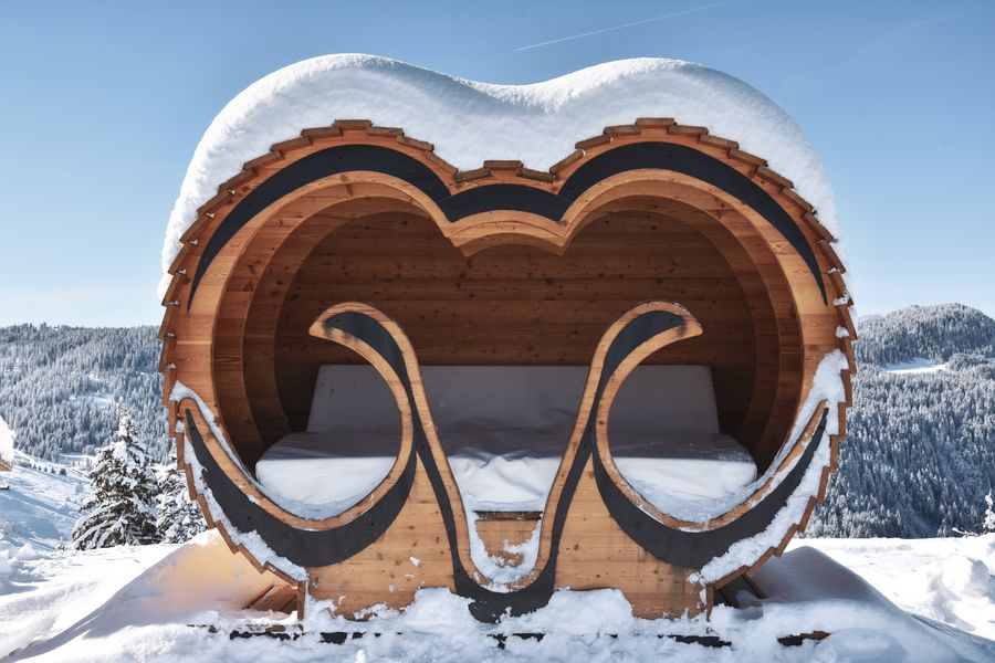 Imaginée par les professionnels de la station et concrétisée par une équipe de shapeurs reconnus, la zone ludique de La Clusaz vous attend. Située sur le secteur du Mini Loup, cette zone « apprentis » permettra au grand public, petits et grands, de découvrir les joies de la glisse et du freestyle en toute sécurité. Espace de ski destiné aux sportifs et aux contemplatifs, le Family run est constitué de 2 parcours séparés par une piste verte, chacun aménagé de modules destinés à l’apprentissage du « freestyle » : - Parcours XS (vert) : composé de modules type « Box » et « Woops » de niveau XS. - Parcours S (bleu) à M (rouge) : composé de modules aériens type « table top » ou petits « big air » et des modules type « Box » de niveau S et M. La piste verte du « P’tit Loup » qui vient séparer les deux parcours du « Family Run » permettra aux contemplatifs et aux non-pratiquants du freestyle de suivre leurs enfants et/ou ami(e)s, ou de se perfectionner en ski avant d’apprendre les premières bases du freestyle. Scénarisée par des artisans locaux, cette zone ludique présente une série de sculptures en bois qui sont l’œuvre de Sébastien Cohendet. La statue du « Bélier » a d’ailleurs été fabriquée exclusivement pour la station de La Clusaz. A vous de la retrouver au cœur du Family Run cet hiver… Côté détente, le lettrage « LA CLUSAZ » a été replacé avec en toile de fond la chaîne de l’Étale et la Tournette : idéal pour une photo souvenir grandiose. De même que le podium géant en bois qui permet de se sentir vraiment champion. Un canapé en forme de bélier, emblème de la station vient parfaire l’ambiance « cosy au sommet » de cet espace qui mélange challenge sportif et détente absolue !