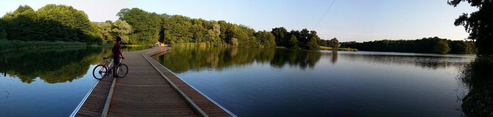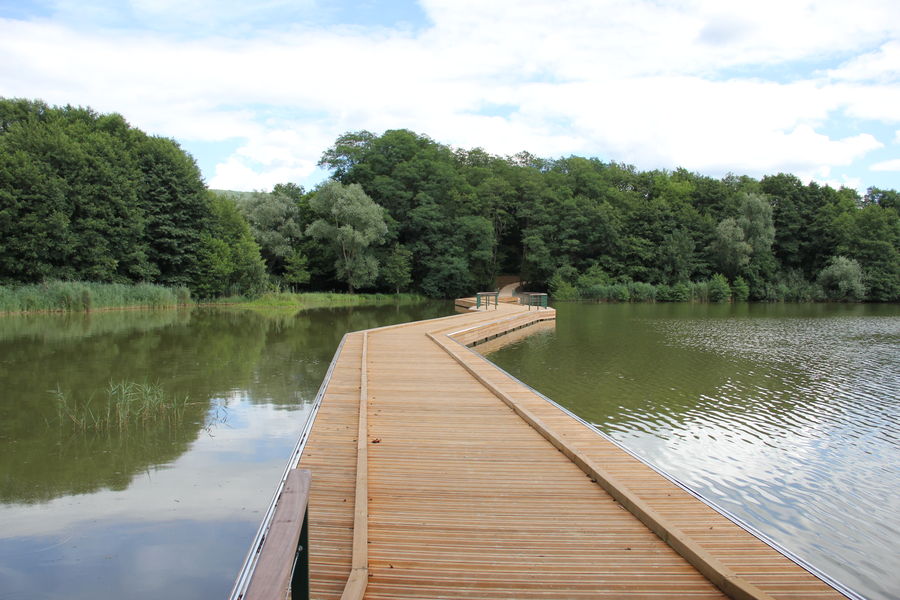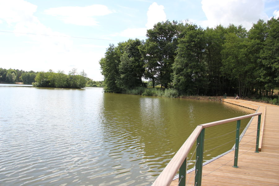 Une passerelle flotante, une façon agréable de découvrir l'étang de la Grange du Pin.