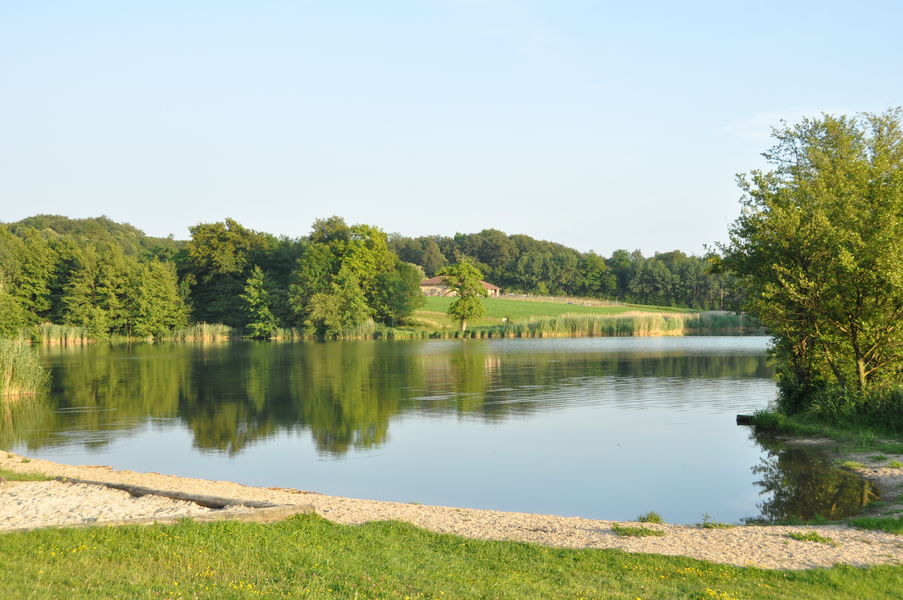 Tour du plan d'eau : Depuis le camping, rejoindre la digne à l'ouest. Passer le pont. Traverser le passage humide sur les pilotis et remprunter la passerelle flottante pour revenir sur la plage.