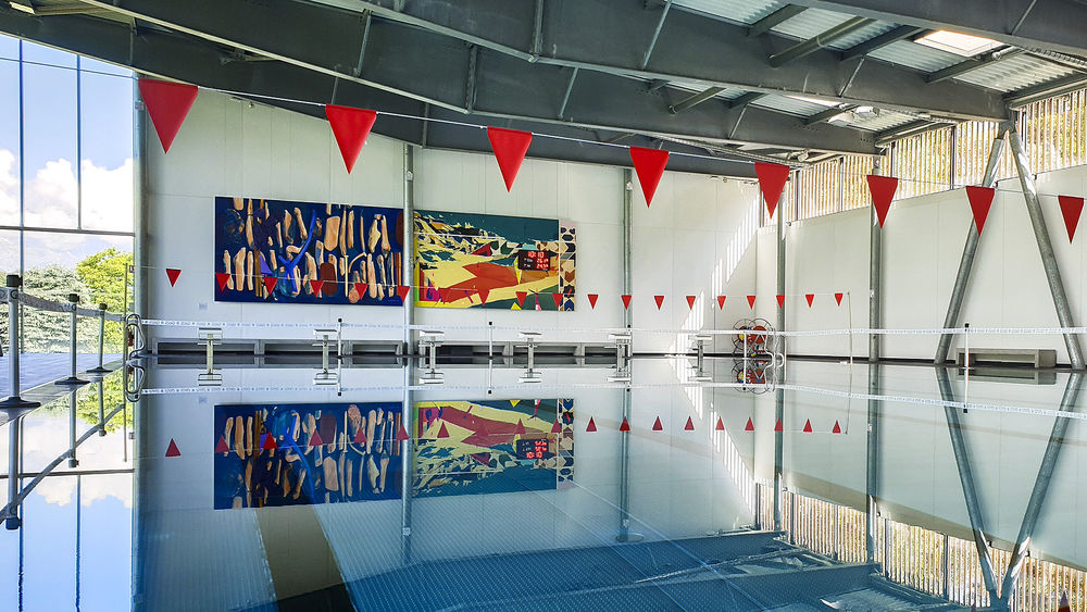 2KM3 Acte II permet d’appréhender toute la subtilité d’une nouvelle génération d’artistes issus du muralisme : Etienne de Fleurieu, Irsut, Sobekcis, Swiz, Sainer, Velvet et Zoer ont réalisé des peintures en atelier aux dimensions plus intimes. Les œuvres ont été pensées et imaginées pour s'adapter aux spécificités des différents lieux ! L'art se glisse dans le quotidien et soude le tissu urbain en insérant la création contemporaine au cœur de l’espace public et des loisirs de la ville! Façade de la Poste Les interventions artistiques qui ont eu lieu à Saint-Gervais Mont-Blanc sont nouées par la genèse de la pratique de tous ces artistes : un mural. Le collectif français, Die Cast, a réalisé une œuvre à quatre mains au coeur de la ville. Die Cast - Rocks, imprint, nail, 2018 Piscine de Saint-Gervais Les lieux propices aux loisirs sont souvent dissociés des endroits où la culture s’expose. En associant ces deux entités, on pense à l’institution de Roubaix ou à l’œuvre de Leando Erlich. A Saint-Gervais Mont-Blanc, les œuvres s’installent au plus près des bassins pour que les usagers profitent des moments dédiés à la détente, au sport ou aux loisirs. Zoer, Objet Courbe / Paysage, 2018 Swiz, Crossing paths / Gradient 1 / Gradient 2, Frozen windows, 2018 Sobecksis, Sans titre, 2018 Etienne de Fleurieu , Nocturne silencieuse, 2018 Velvet, Roller Derby / Bois flotté, 2018 Irsut, Contre-formes de jeux d'enfants, 2018 Gares du télécabine Saint-Gervais - Bettex - Mont d'Arbois Attractive en hiver comme en été et conservant ce désir de décloisonner les lieux dédiés à l’art, Saint-Gervais fait le pari risqué de disposer des œuvres aux abords des pistes, dans les gares des télécabines du Bettex et du Mont d’Arbois.. . Les artistes proposent trois œuvres originales afin qu’à Saint-Gervais Mont-Blanc, la création contemporaine se retrouve jusqu’au pied des pistes. Irsut, Carte postale de paysages abstraits, 2018 Sainer, Sans titre, 2018 Zoer, Magnesium, 2018 Le mur de la poste est accessible librement toute l'année ! Les œuvres à la piscine sont accessibles en payant l'entrée de la piscine pendant les heures d'ouverture. Les œuvres des remontées mécaniques sont visibles sans forfait en entrant dans les gares du Bettex et du mont d'Arbois, celle installée dans la gare de télécabine de Saint-Gervais nécessite un forfait