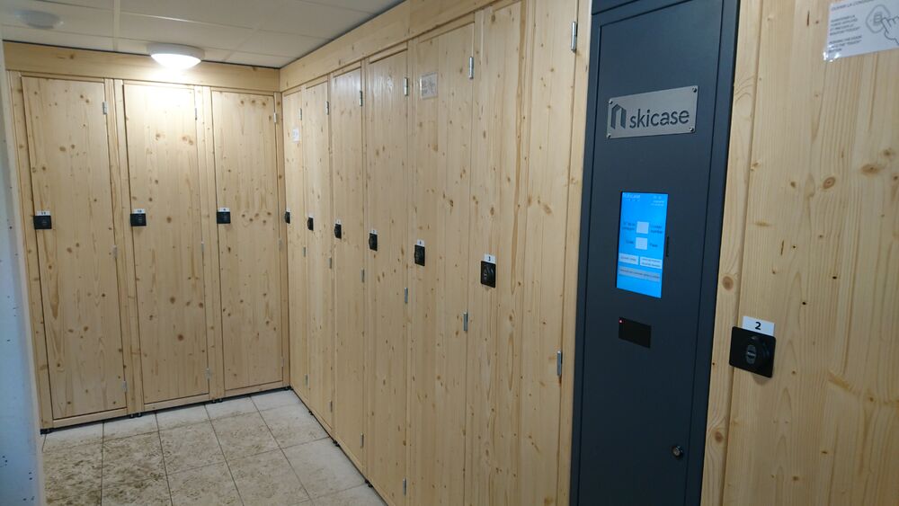 Réservation de 1 à 14 nuits, 4 à 5 paires de skis par casier, sèche-chaussures intégré. Location directement sur place ou via la caisse des remontées mécaniques.