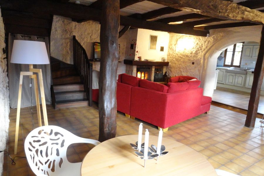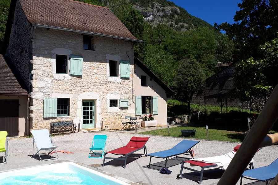 Maison de caractère, au pied des montagnes du Bugey, dans le charmant petit village viticole de Lhuis. La maison se situe dans un hameau à 3 km du cœur du village où vous retrouverez toutes les commodités (boulangerie, boucherie, épicerie et un bar/restaurant). La piscine privée de 3mx5m est chauffée et couverte par un rideau de sécurité. La maison a une capacité d'accueil de 8 personnes, elle comprend: - au rez de chaussée: séjour/cuisine équipée ouvert sur grand salon avec cheminée. - au premier niveau, accès plain-pied sur le jardin en terrasse de pierres sèches avec 2 chambres (chacune avec 2 lits 90x200) - salle d'eau - WC indépendant, - au deuxième niveau 1 grande chambre avec 2 espaces couchage et jeux de 2 lits 90x200 chacun- salle de bain - WC indépendant. Draps et linge de toilette fournis- Par défaut les couchages seront fait en 90, vous pouvez me demander de jumeler les lits pour avoir des couchages en 180. Pensez bien à me le dire! Forfait ménage: 60€ Vous serez entourés de verdure (l'arrière de la maison est dans les bois, avec une balançoire pour les enfants). De nombreux sentiers de randonnées démarrent du village. Vous pourrez aussi découvrir nos vins biologiques en AOC Bugey et nos jus de raisin Bio, mais aussi faire une balade au milieu de nos vignes qui surplombent le Rhône où vous aurez une vue magnifique sur l'Isère. De nombreux villages médiévaux nous entourent, comme Crémieu ou Pérouges mais aussi Morestel connu pour sa cité des peintres. A 10 minutes du parc d'attraction Walibi Rhône-Alpes, 20 minutes du centre nautique de loisirs La Vallée Bleue. Vous serez à 1h de Lyon, 45 minutes de l'aéroport de Lyon Saint-Exupéry, 45 minutes de Chambéry, 1h de Genève et à seulement 1h30 des premières stations de ski des Alpes.