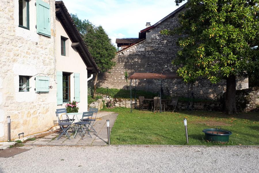 Maison de caractère au pied des montagnes du Bugey, dans un charmant petit hameau près du village viticole de Lhuis. Profitez du calme d'une belle nature de moyenne montagne et des excellents produits locaux faits avec passion et goût !