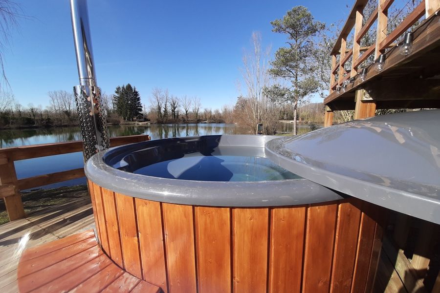 Didier vous accueille dans son "Havre de Paix" d'où le nom HAVANA pour les gîtes et l'étang de pêche. Le gîte HAVANA se situe sur l’étang de cordon qui vous propose plus de 2ha d’eau d’une profondeur jusqu’à 5m. Plusieurs îles centrales divisent le plan d’eau en deux. Dans un cadre exceptionnel privé et clos de 3 ha, idéal pour la Pêche de nuit et pêche en no-Kill. Le gîte n°1 HAVANA surplombe l'étang avec son espace de pêche privatif. Vous serez conquis par sa construction en matériaux nobles, marbre et bois. Il se compose : - D'un grand séjour donnant sur la terrasse, ouvert sur la cuisine toute équipée, et le séjour-salon avec poêle à granules (canapé lit couchage 140x190) - D'une alcôve avec lit 140x190 - D'une chambre indépendante avec lit 140x190 - D'une salle d'eau indépendante avec WC séparé- D'un bain nordique privatif à disposition Plongez dans le bain nordique, dans une eau à 39°C chauffée au feu de bois, pour des bains relaxants en toute saison. Sensation de bien-être garantie ! Vous avez le choix en extérieur d'une grande terrasse avec table et bancs proches de la cuisine pour vos repas et des salons de jardin au bord de l'eau au pied du gîte. La barque avec gilets de sauvetage est amarré au pied du gîte. A 5 km du Parc d'attraction Walibi Rhône-Alpes