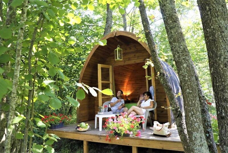 Vous pourrez préparer votre petit déjeuner ou encore le commander pour une livraison à l’heure de votre réveil, profiter d’un dîner en terrasse du restaurant du plan d’eau ou encore profiter d’une escapade en paddle sur le plan d’eau. Cet igloo en bois est sans sanitaire, il faudra alors utiliser les espaces communs à proximité ou louer un sanitaire privé : 15 €/jour