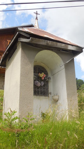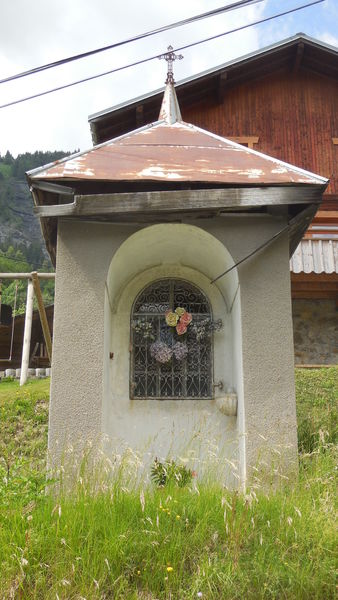 Bâtiment massif en crépi blanc, au toit à 4 pans recouvert de tôle et surmonté d’une croix en fer forgé, a été érigé en 1866. Un petit bénitier a été placé à droite d’une niche en retrait protégée par une grille en fer forgé : « CMF 1867 ».