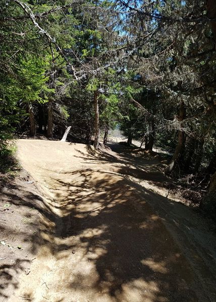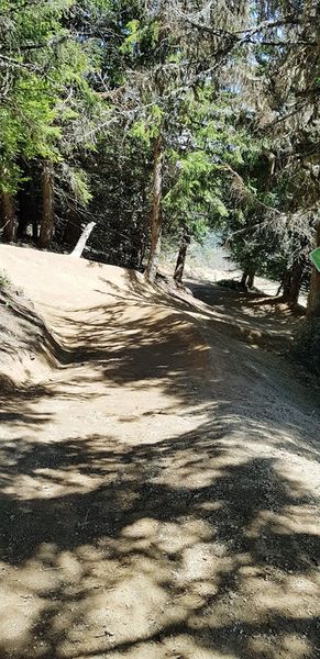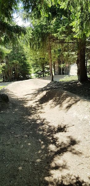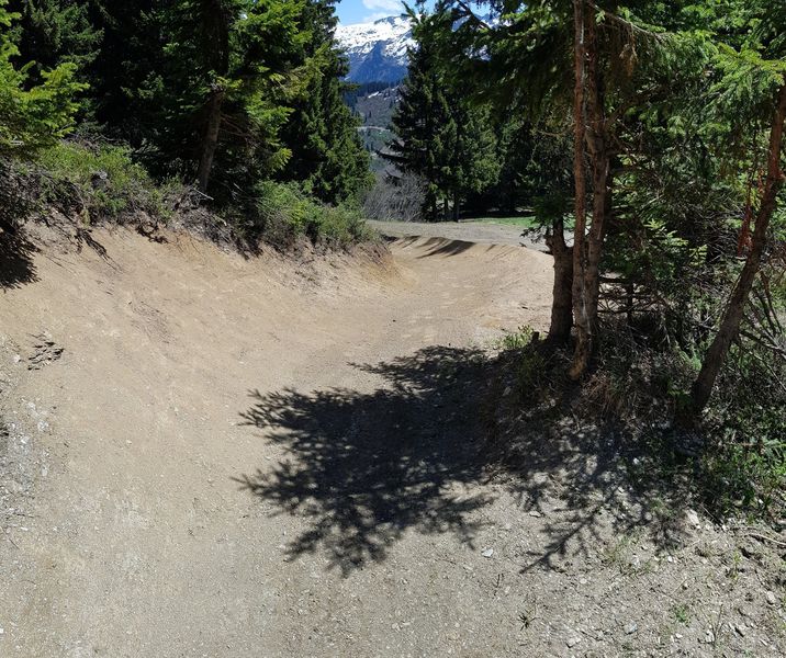 Très belle piste verte pour une jolie balade avec vue sur le Mont-Blanc et itinéraire en sous-bois ou tout simplement pour s'initier au VTT de descente.