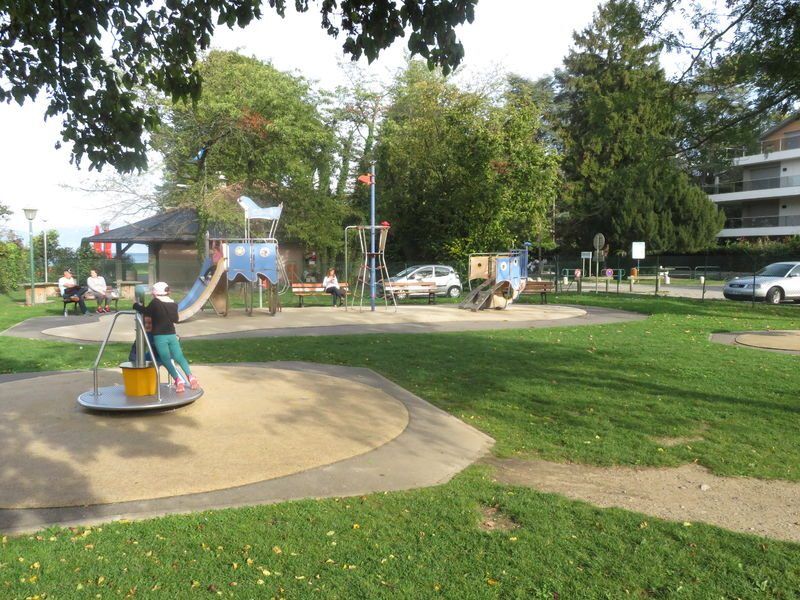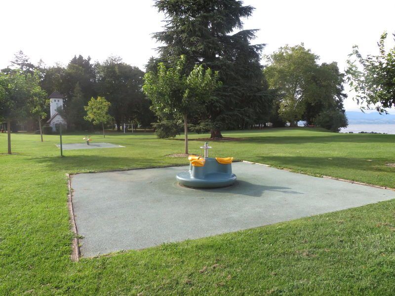 Aire de jeux pour enfants situé à la plage d'Amphion: tobogan, tourniquet...