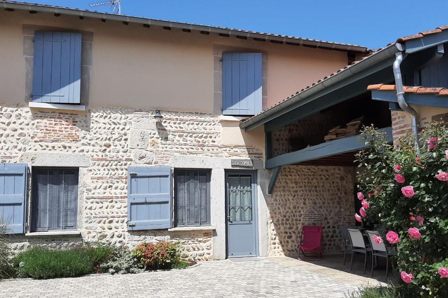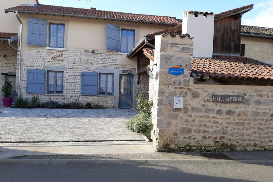 Au pied de la cité médiévale de Pérouges, dans une ancienne ferme de caractère entièrement rénovée, gite de 135 m2, d'une capacité de huit personnes, spacieux et confortable proche du Parc des Oiseaux et de Lyon.