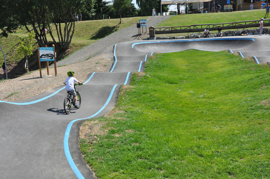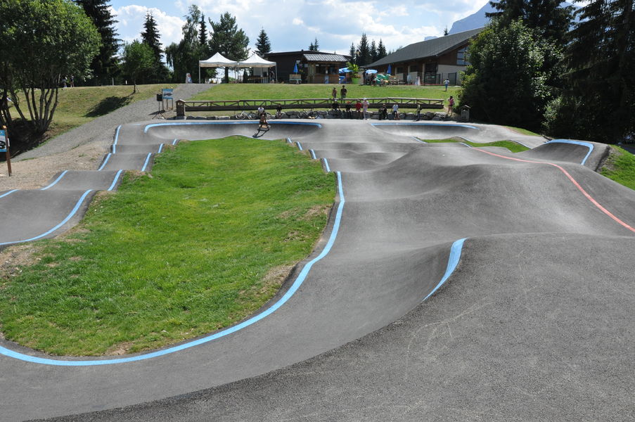 Ce parcours en boucle fermé est constitué de plusieurs bosses consécutives et de virages. La Pumptrack peut être utilisée avec différents équipements sportifs : VTT, BMX, skates,trottinette, rollers... Longue de 230m 3 circuits : un bleu très facile, un bleu facile pour les débutants et un rouge pour les plus expérimentés avec des enchaînements de virages, creux et bosses.