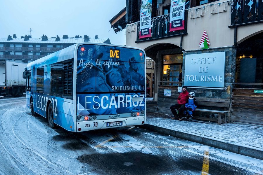 Durant toute la saison d’hiver, des skibus desservent les différents hameaux et lieux de résidence de la station pour vous conduire dans le centre ou au départ de la Télécabine de la Kédeuze. Plusieurs lignes pour vous déplacer : - Vacances scolaires : A : Pré du bois – Télécabine (toutes les 15 minutes) + boucle du stade à horaires fixes B : Office de Tourisme - Le Laÿs - Télécabine - Le Bry - Le Pernand C : Centre nordique d’Agy – Télécabine via La Frasse et Arâches D : Les Feux - Les Servages - Télécabine - Hors vacances scolaires : A : Pré du bois – Télécabine (toutes les 20 minutes) BC : Office de Tourisme - Arâches - La Frasse - Le Bry - Télécabine D : Télécabine - Les Genièvres - Office de Tourisme - Les Servages Toutes ces lignes passent par le centre-ville : arrêt de bus situé devant l’Office de Tourisme.