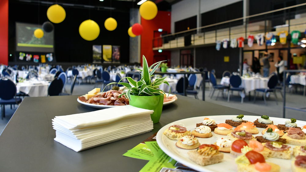 La salle polyvalente de 700 m2 permet la pratique de plusieurs sports (badminton, volley, basket, gymnastique, unihockey...). Elle est idéale pour les grandes réceptions comme des banquets, des mariages, des séminaires et des congrès.