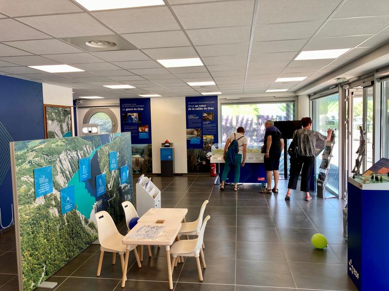 Dans l'enceinte du bâtiment le Môle (Un espace d'exposition de 60 m² consacré aux activités d'EDF sur la vallée du Drac.), au bord du lac de Monteynard-Avignonet, ce point d'information vous renseigne sur le lac et ses environs.