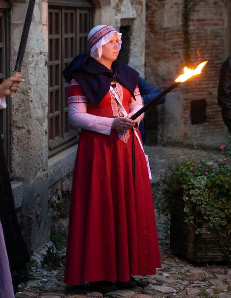 À la lueur des flambeaux, sillonnez les ruelles pavées de Pérouges en compagnie des dames qui vous content leur vie nocturne, leurs peurs, leurs croyances, leurs activités et les veillées de la cité. Découvrez cet univers méconnu dans une atmosphère sombre, mais contée avec humour, qui se prête parfaitement au voyage dans le temps...