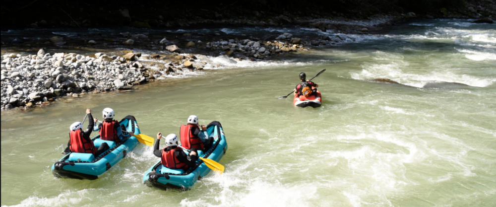 Canoe gonflable ou Hot Dog pour d’autres, vous embarquez à deux, avec une pagaie simple pour une descente en autonomie, accompagné de votre guide qui navigue à côté de vous sur environ 6 kilomètres de descente. Communication et synchronisation sont les 2 mots d’ordre. C’est un bon test pour les couples !