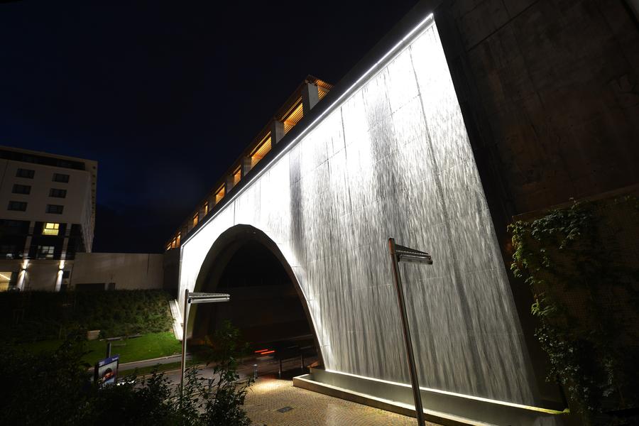 Le designer Christian Ghion a imaginé une saisissante entrée de ville pour Aix-en-Provence : il a paré le pont Juvénal Mozart du plus grand mur d'eau urbain d'Europe. Un hommage contemporain aux aqueducs romains.