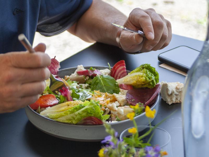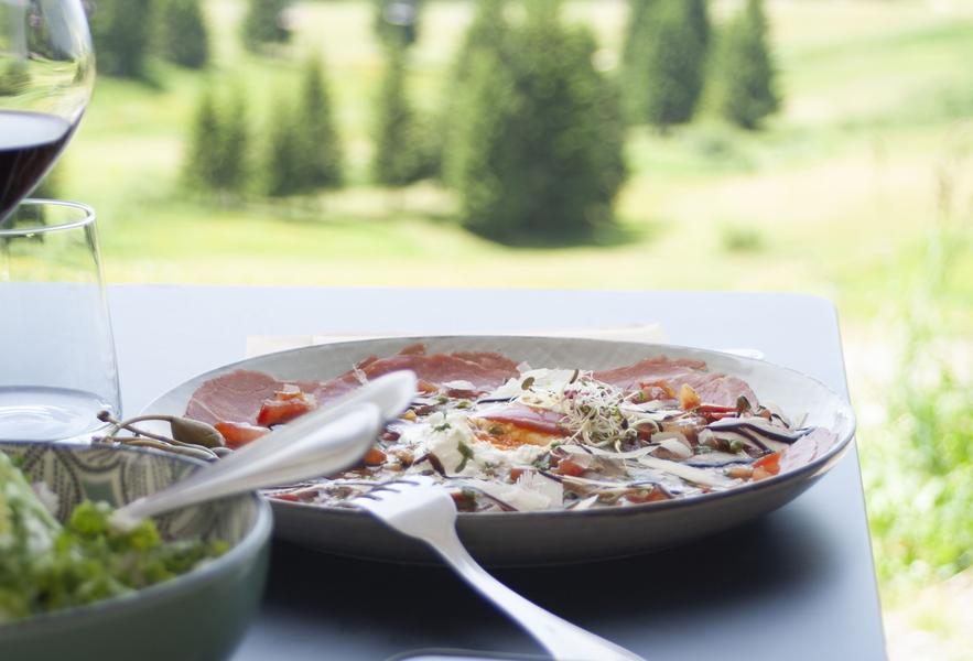 Une cuisine simple et variée, à base de produits selon les arrivées du jour. Grand choix de snacking pour une pause détente avec vue imprenable sur le golf, depuis sa grande terrasse plein sud.
